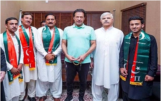 Provincial Vice President of National Waran Party and significant personality of Swat, Nasrullah Khan Nasir are with PTI Chairman Imran Khan and CM KPK Mahmood Khan on the occasion of joining PTI.
