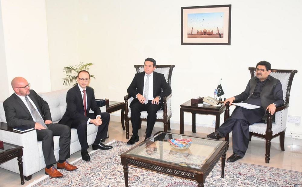 Federal Minister for Finance and Revenue Mr. Miftah Ismail holding a meeting with Chief International Officer (CIO) TAWAL KSA Mr. Emmanuel Leonard at Finance division.