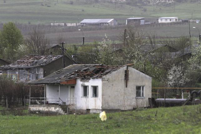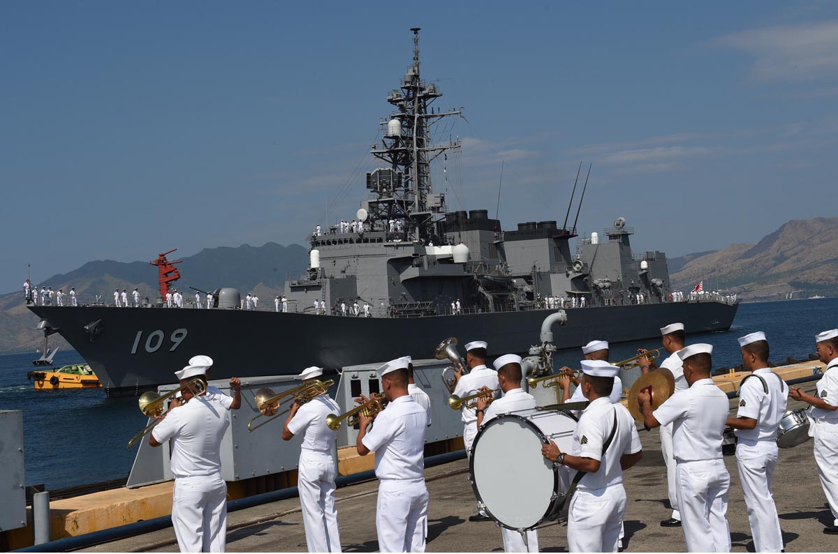 The Philippines Navy band playing music during a reception held on the arrival of Japanese destroyer J. S. Ariake in Manila on Sunday.A view of a house damaged during clashes between Armenian and Azeri forces in the town of Martakert in Nagorno-Karabakh region on Sunday.