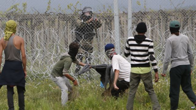 Syrian President Bashar al-Assad casting his vote in parliamentary elections in Damascus on Wednesday.-APMigrants trying to remove barbed wires along the fence during a clash with Macedonian police at the northern Greek border point of Idomeni, Greece on Wednesday.