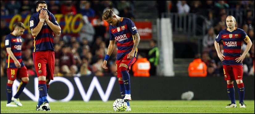 Barcelona’s title bid suffered another setback when they lost 2-1 at home to Valencia — their third straight La Liga defeat — while Atletico Madrid moved level on points with the league leaders after a 3-0 home win over Granada.Barca have 76 points along with Atletico, who knocked the holders out of the Champions League in midweek, and remain top only due to a superior head-to-head record.