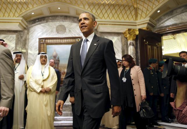 U.S. President Barack Obama arrived for a summit of the Gulf Cooperation Council (GCC) in Riyadh, Saudi Arabia on Thursday.NATO Secretary General, Jens Stoltenberg and Turkish Foreign Minister Mevlut Cavusoglu shaking hands afer a joint news conference in Ankara, Turkey on Thursday.Britain’s Queen Elizabeth and Prince Philip driving past well-wishers during celebrations for the Queen’s 90th birthday in Windsor, Britain on Thursday.