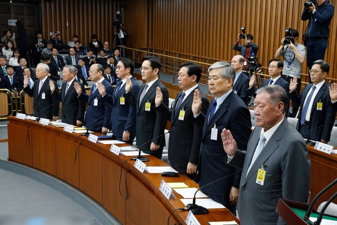 In 1988, business tycoons were hauled into a parliamentary hearing to be questioned about millions of dollars they gave to a foundation controlled by the military dictator Chun Doo-hwan. The scene was repeated this week, when nine business leaders, including Jay Y. Lee, the vice chairman of Samsung, and Chung Mong-koo, the Hyundai chairman, appeared at another parliamentary hearing to be questioned about millions of dollars they gave to two foundations controlled by Ms. Choi.