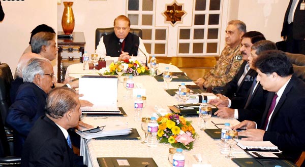 Prime Minister Muhammad Nawaz Sharif chairing a meeting on Pakistan’s Foreign Relations  at PM House in Islamabad on Monday. - NNI