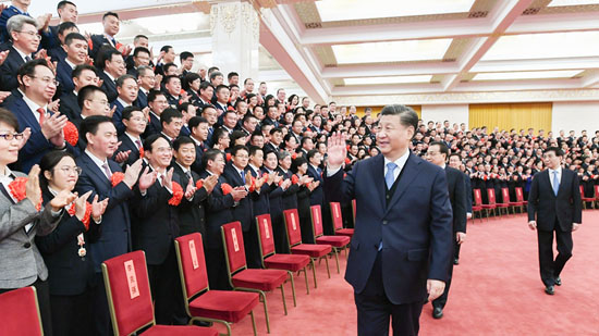 Chinese President Xi Jinping meets with representatives at a meeting commending role models in implementing the country’s Peaceful China initiative in Beijing, China