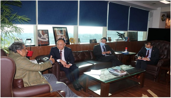 Chinese Ambassador to Pakistan H.E Mr. Nong Rong and Federal Minister Syed Ali Haider Zaidi discussing the CPEC energy projects and Gwadar development in Islamabad on Friday.