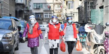 Volunteers deliver daily necessities for residents at a community in Xi’an, northwest China’s Shaanxi Province