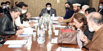 Chairman Senate Sadiq Sanjrani chairing a Senate House Business Advisory Committee meeting at Parliament House in Islamabad.
