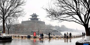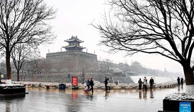 Citizens visit the ancient city wall in Xi’an, northwest China’s Shaanxi Province