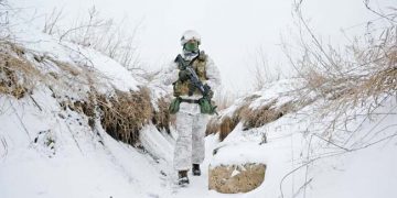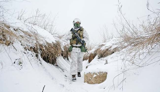 A service member of the Ukrainian armed forces walks at combat positions near the line of separation from Russian-backed rebels outside the town of Avdiivka in Donetsk Region, Ukraine