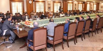 Prime Minsiter Imran Khan chairing a meeting in Lahore to review progress of development projects in Faisalabad Division.