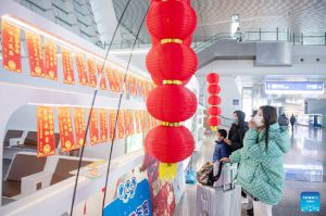 Passengers take part in a riddle guessing activity at the waiting hall of Hangzhou East Railway station to celebrate the upcoming Lantern Festival in Hangzhou, east China’s Zhejiang Province