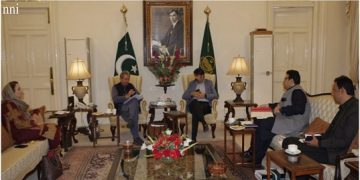Federal Education Minister and PTI Punjab President, Shafqat Mehmood is presiding over a meeting. Gen. Secy Raja Yasir Humayun and Secy Information Musarrat Jamshed Cheema are also present.