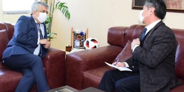 Muhammad Sualeh Ahmed Faruqui, Secy Commerce in a meeting With H.E. Mr. Oybek Usmanov Ambassador of Uzbekistan in Islamabad on Monday.