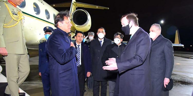 MOSCOW, February 23: Prime Minister Imran Khan reached Moscow on Wednesday on a two-day official visit on the invitation of Russian President Vladimir Putin.