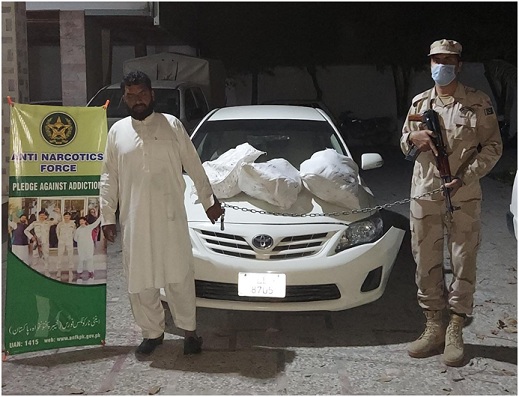 PESHAWAR, March 22: Anti Narcotics Force (ANF) Peshawar, on a tip off, intercepted a Toyota Corolla car bearing Reg#LE-8705 near NoshehraCanttdisttNoshehra and arrested an accused namely, Manzoor Khan resident of Distt Khyber.