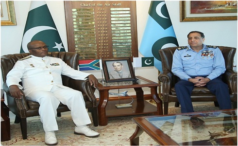 Vice Admiral Mosuwa Samuel Hlongwane, Chief of South African Navy called on Air Chief Marshal Zaheer Ahmed Baber Sidhu, Chief of the Air Staff PAF at Air Hqrs in Islamabad on Tuesday.