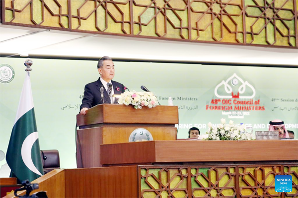 Addressing the 48th session of the Council of Foreign Ministers of the Organization of Islamic Cooperation (OIC), Wang said China is ready to build four partnerships of solidarity, development, security and civilization with Islamic countries in a world full of turbulences and transformations.