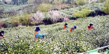 Workers pick tea leaves in a tea garden in Jiangning District of Nanjing, east China’s Jiangsu Province