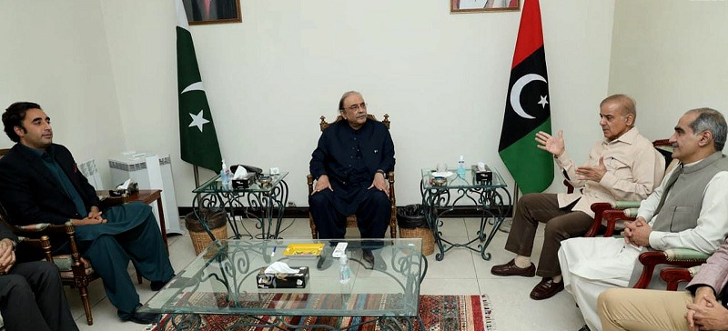 ISLAMABAD, April 10: Opposition Leader in the National Assembly Shehbaz Sharif, who today filed his nomination papers for the prime minister’s election, met PPP co-chairman Asif Ali Zardari and chairman Bilawal Bhutto-Zardari in Islamabad Sunday evening. Sources said that the meeting took place at Zardari House. Shehbaz expressed gratitude to the former president over his support for the no-confidence motion against former prime minister Imran Khan. They deliberated the prime minister’s election and a future strategy. The National Assembly will meet tomorrow (Monday) at 2:00pm to elect the new prime minister after PTI chairman Imran Khan was de-seated from the highest office of the country through the opposition-moved no-confidence motion. The nomination papers of joint opposition’s candidate Shehbaz Sharif and PTI’s Shah Mahmood Qureshi have been approved for the prime minister’s election. Pakistan Muslim League-Nawaz (PML-N) President Shehbaz Sharif and former foreign minister Shah Mahmood Qureshi earlier submitted nomination papers for the election of prime minister following ouster of Imran Khan. -TLTP