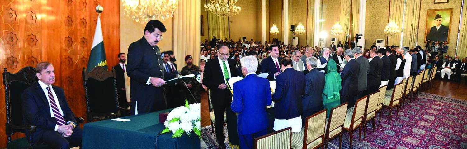 ISLAMABAD, April 19: A 37-member federal cabinet, comprising 30 federal ministers, four state ministers and three advisers to the prime minister, took oath at a swearing-in ceremony at the Aiwan-e-Sadr on Tuesday.