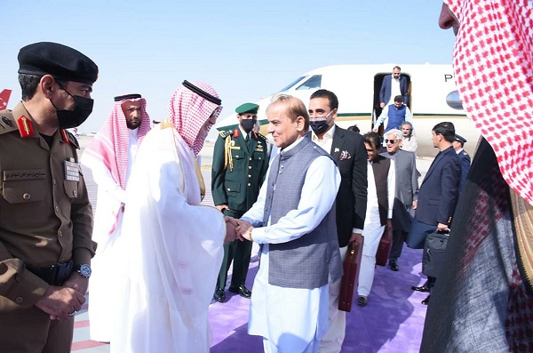 Governor of Makkah Khalid Bin Faisal Al Saud and the National Security Advisor of Saudi Arabia Dr. Musaed Bin Muhammad Al Aiban received Prime Minister Shehbaz Sharif on his arrival at Jeddah on Friday.