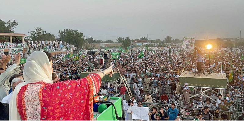 PML-N Vice President, Maryam Nawaz is addressing a public gathering in Swabi on Wednesday.