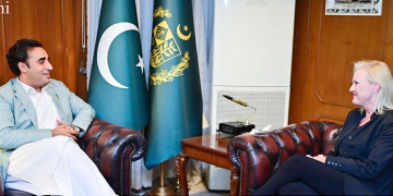 U.S Charge d’Affaires to Pakistan, H.E. Angela Aggeler is paying a farewell call on Bilawal Bhutto Zardari in Islamabad on Thursday.