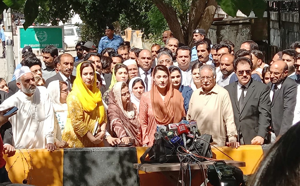 PML-N Vice President, Maryam Nawaz is talking to media on Thursday.