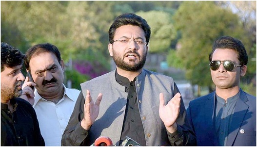 PTI leader Farrukh Habib addressing a press conference in Islamabad on Sunday.
