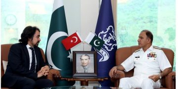 CNS Admiral Muhammad Amjad Khan Niazi exchanging views with Turkish Ambassador H.E Mr Ihsan Mustafa yurdakul at Naval Headquarters in Islamabad.