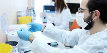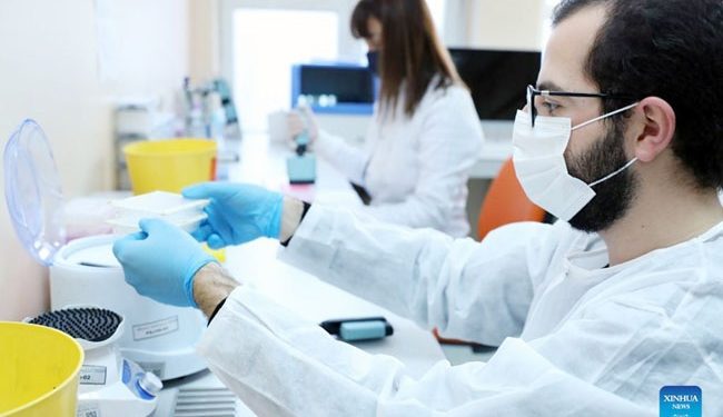 Health workers study COVID-19 Omicron variant at a virology laboratory in Ankara, Turkey