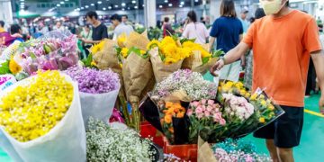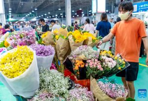 People visit the Kunming Dounan Flower Market at night in southwest China’s Yunnan Province