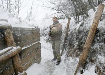 Read moreService member of the Ukrainian armed forces stands guard in a trench at combat positions nearthe...